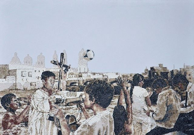 Interested in working in with industrial materials but in an artisanal way, I developed this series of works that represent everyday scenes. The use of polypropylene, a very utilitarian material and present in daily life, appears as a commentary on the interaction of the human being, with technology and natural resources.